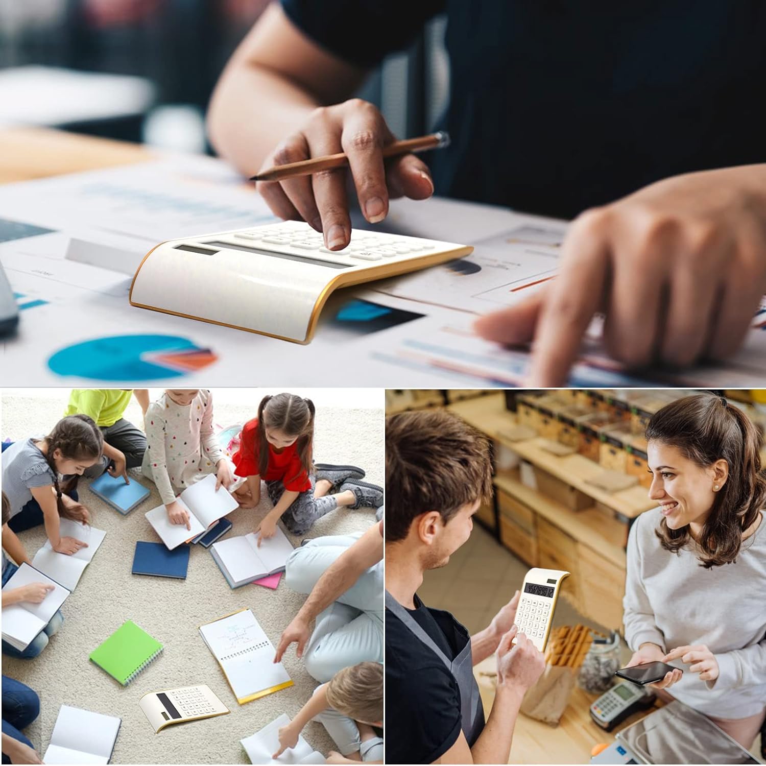 Calculator, 10 Digits Solar Battery Basic, Dual Powered Desktop Calculator, Tilted LCD Display, Inclined Design Slim Desk Calculator by Sportsvoutdoors (White)