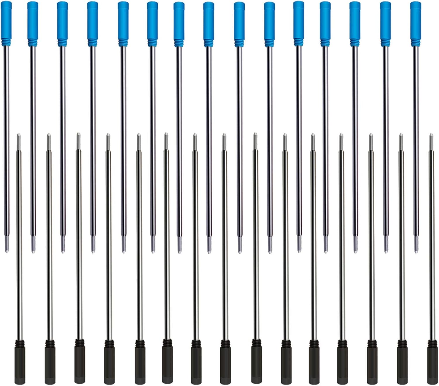 • Package Includes: 30pcs metal ballpoint pen refills, include 15pcs black ink and 15pcs blue ink. Enough quantity for replacement.