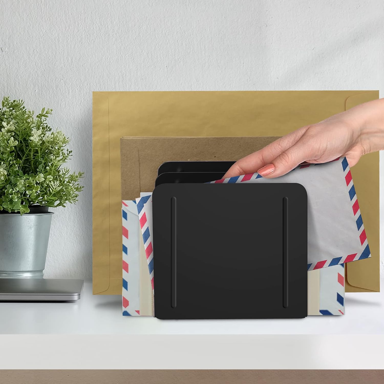 • Durable Construction: Made from sturdy metal and finished with high-quality electrostatic powder paint, this file sorter is built to last. The rounded edges ensure safe handling, while its compact size (6 5/16" x 4 7/8" x 7 1/8") fits neatly on any desk without taking up too much space;