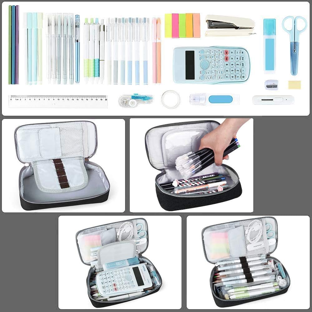 • 【PREMIUM MATERIAL & METICULOUS CRAFT】: High quality Oxford fabric makes the pencil case more stretchy and reversible, scratch resistant and dirt resistant, easy to clean. Fine workmanship, decent appearance, smoothly closed by two strong zippers.
