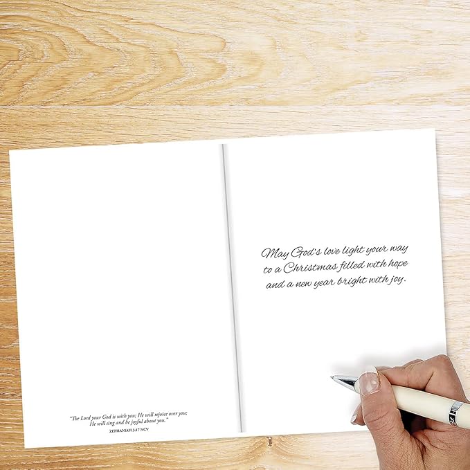 • BRIGHT, COLORFUL DESIGNS: Add a personal touch to the holidays with this beautiful festive design featuring a peaceful manger and Christmas tree scene paired with faithful sentiments that capture the true essence of the holiday season; Inside: The Lord your God is with you... He will rejoice over you... He will sing and be joyful about you