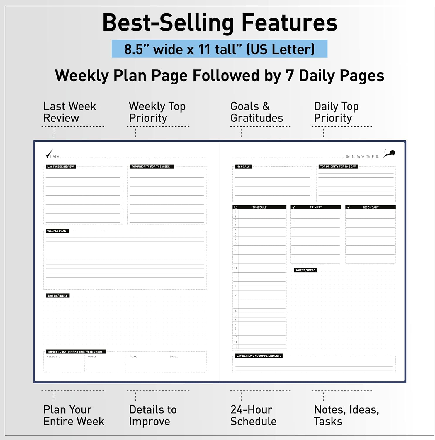 • ✅ POSITIVE PSYCHOLOGY APPROACH. Keep your priorities in clear view and achieve what matters every day with a day planner designed for high achievers seeking an intentional, fulfilling lifestyle.
