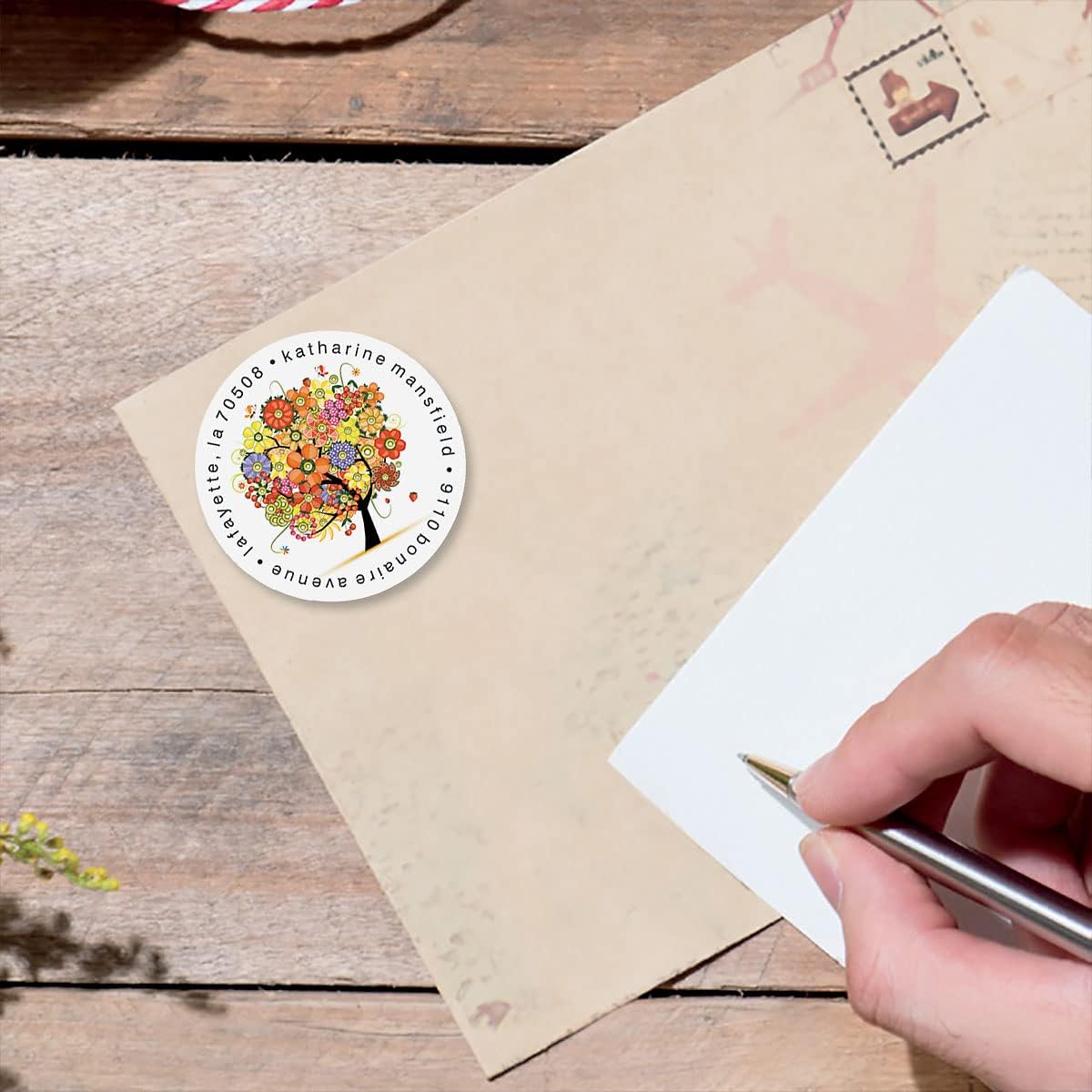 Colorful Images Blooming Tree Floral Return Address Mailing Labels, Personalize with Name & Address, Set of 144 Self Adhesive, Easy Peel Flat Label Sheets, Round, 1 Design