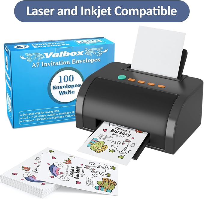• 【Printer Friendly】Print with your Laser and Inkjet Printers on our A7 greeting card envelopes. Perfect size and weight, never worry about smudging or having the envelopes engulfed by your printer.