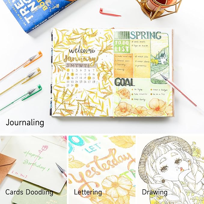 • 50 METALLIC PACK: Shuttle Art 50 pack metallic Gel Pens Set contains 25 INDIVIDULE metallic colors plus 25 matched refills. Enjoy the fun of coloring! Each pen enjoys a unique color, which brings much more fun for Adult book Coloring, Scrap booking, Sketching, Doodling, Drawing, Writing, and all the other art designs.