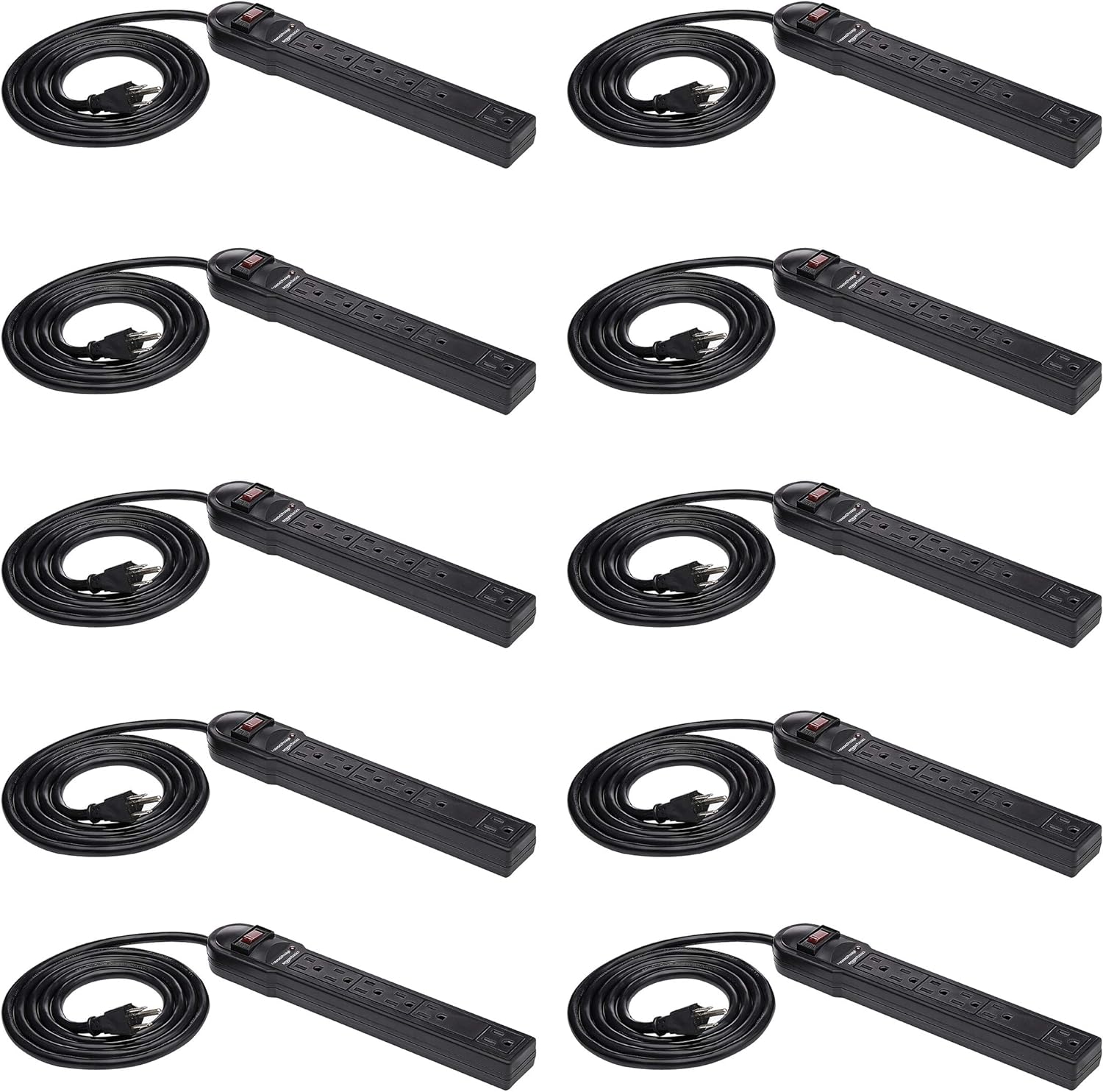 Amazon Basics Surge Protector Power Strip, 6-Outlet, 790 Joules, LED Indicator, 6ft Extension Cord, 10-Pack , Black