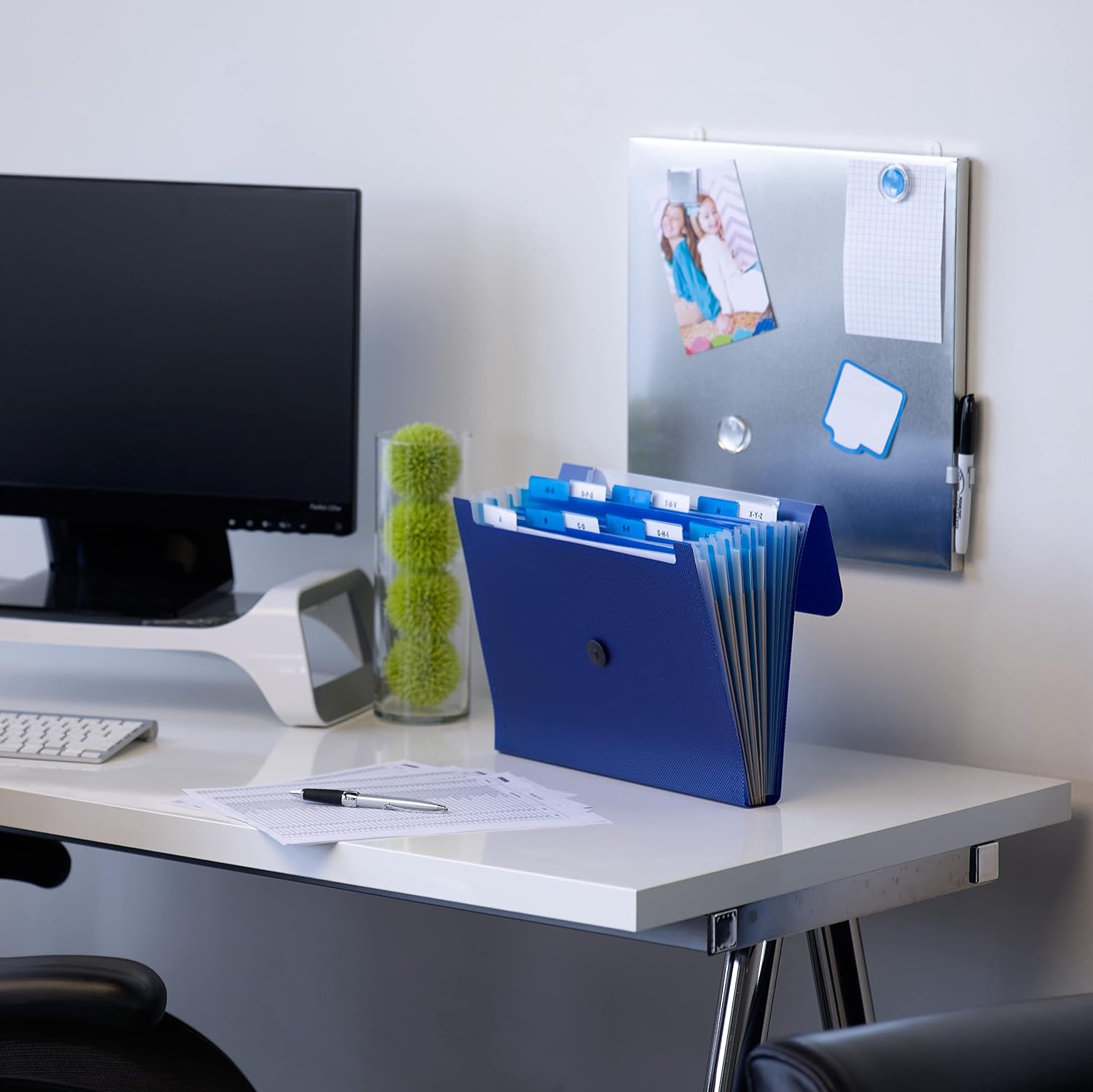 • Includes 2 letter size (13” W x 10” H) embossed poly organizers in navy blue with 12 pockets and indexed dividers to keep your documents sorted wherever work takes you