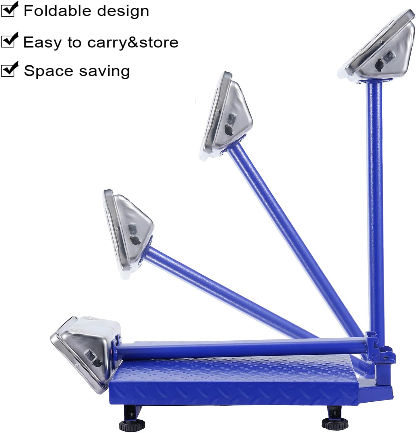 • 【Top Quality】-- The weighing platform measures 15.7''Lx19.7''W, sturdy and wide platform accommodates various items. 4 Adjustable skid proof feet for keeping the platform balance. Foldable design makes it easy to carry and store, saving space.