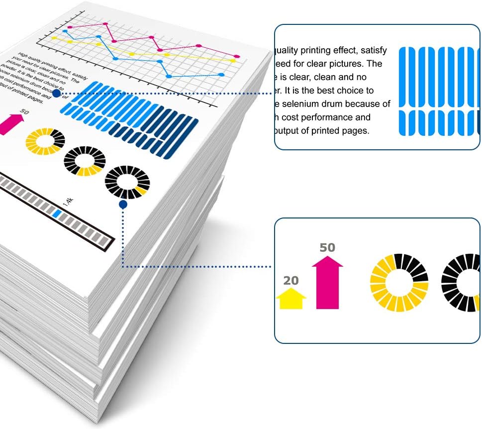 • Page Yield: Black is 2,000 pages per cartridge and Color is 1,400 Pages per (Letter/A4 at 5% coverage)