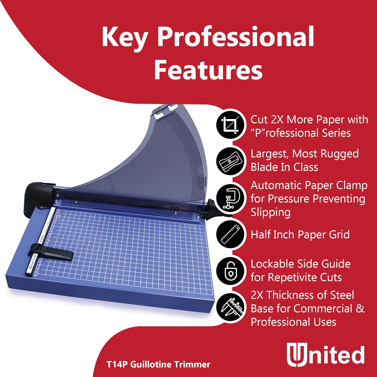 United Office Products T14P Professional Guillotine Paper Trimmer, Sturdy Metal Base, 14" Cut Length, 40 Sheet Capacity, Paper Cutter for Offices, Schools and Crafts
