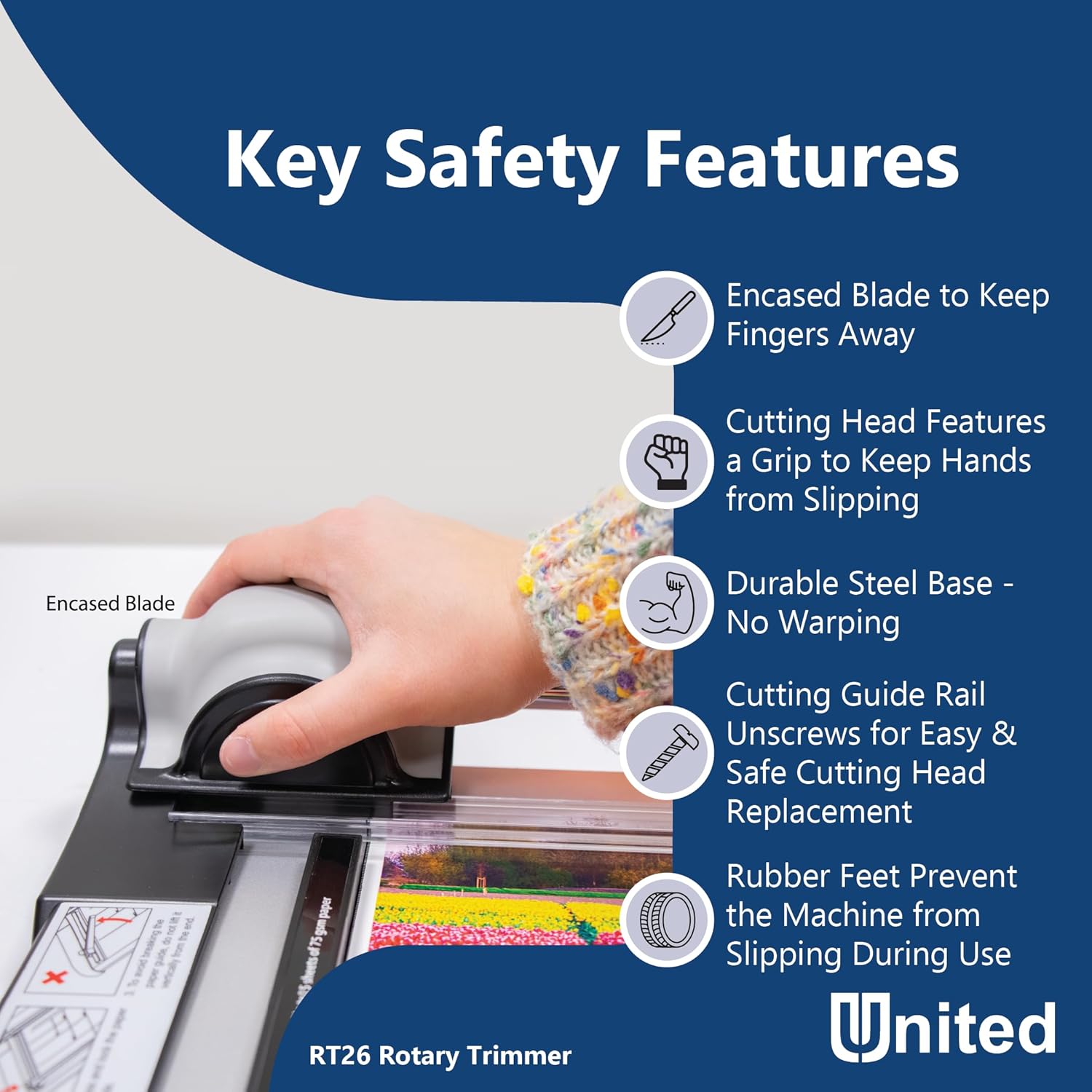 United Office Products RT26 Commercial Rotary Paper Trimmer, Sturdy Metal Base, 26" Cut Length, 15 Sheet Capacity, Paper Cutter for Offices, Schools and Crafts