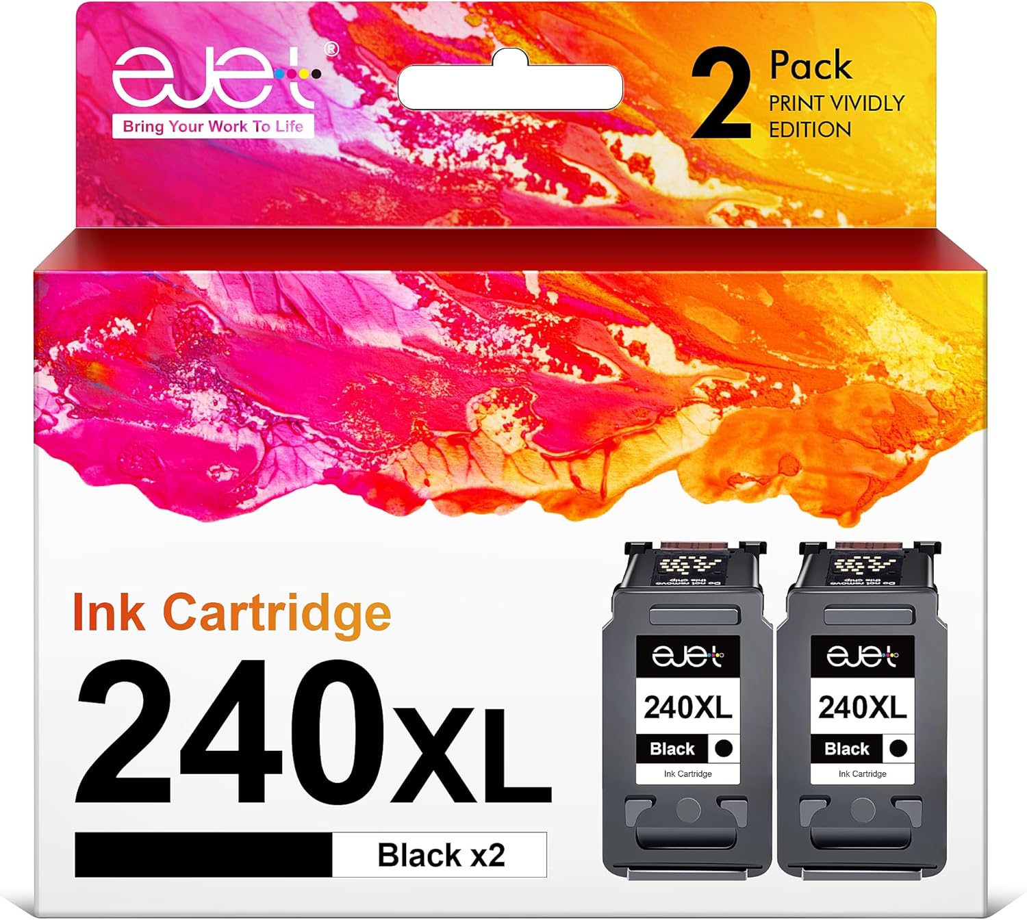 • 【Package Content】You will get ejet PG-240 XL replacement for Canon 240XL black ink cartridge, 2 x 240XL Black Ink Cartridge, 1 x Comprehensive User Guide)