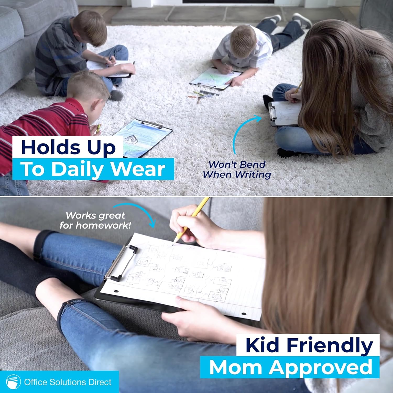 • ✅HARD BUT NOT BRITTLE: While we can’t say you won’t get a few scratches on these, we can tell you it will not chip if you accidentally drop it on the floor. These black clipboards are made of lightweight yet durable plastic; smooth, waterproof surface; suitable for indoor or outdoor use. Not thick and bulky like cheap clipboards, but they won’t bend either!