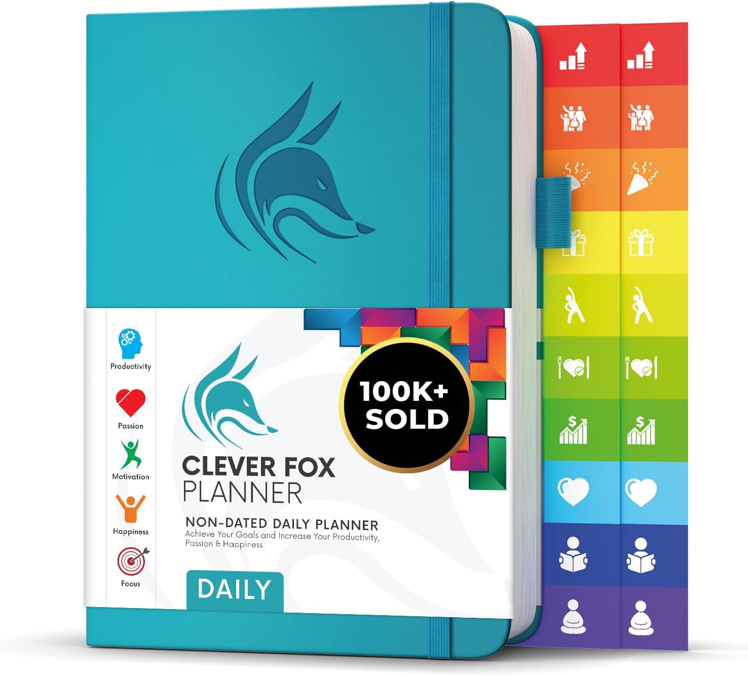 Clever Fox Daily Planner – Undated Planning Notebook with Hourly Schedule & To-Do List – Personal Day Task & Work Organizer, 6 Months (Turquoise)