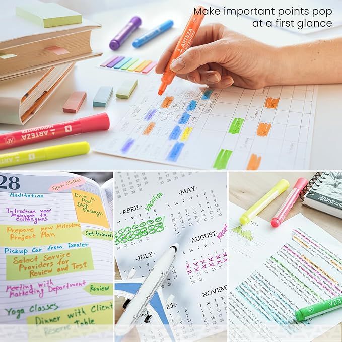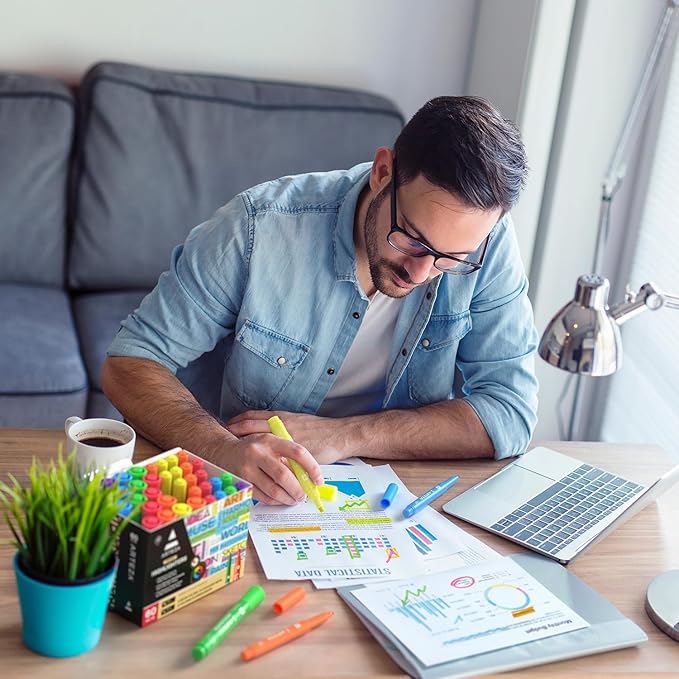 • Fluorescent Markers: Emphasize useful info with one of the 6 neon colors in your pack of 60 Arteza bulk highlighter markers, such as yellow, blue, pink, purple, green and orange.