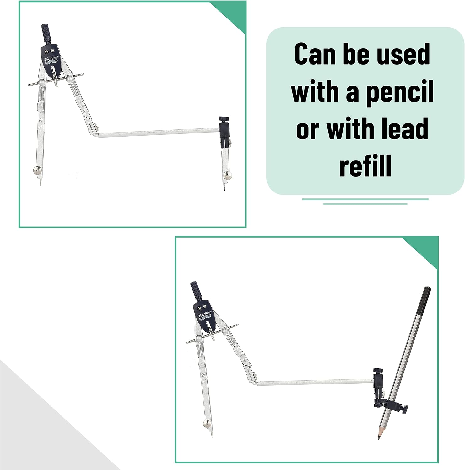 • Professional Compass With Universal Adapter, Extension Beam For Math, Geometry, Art, Drafting And Drawing, Creates Circles Up To 18 Inches In Diameter