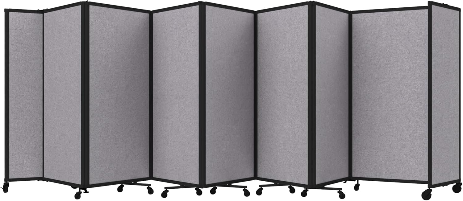 • THOUGHTFUL DESIGN: Made to roll around easily on wheels, this portable room separator also features locking casters to hold it in place. It comes with a trackable surface, sound-dampening fiberglass panels and a folding design for easy storage.