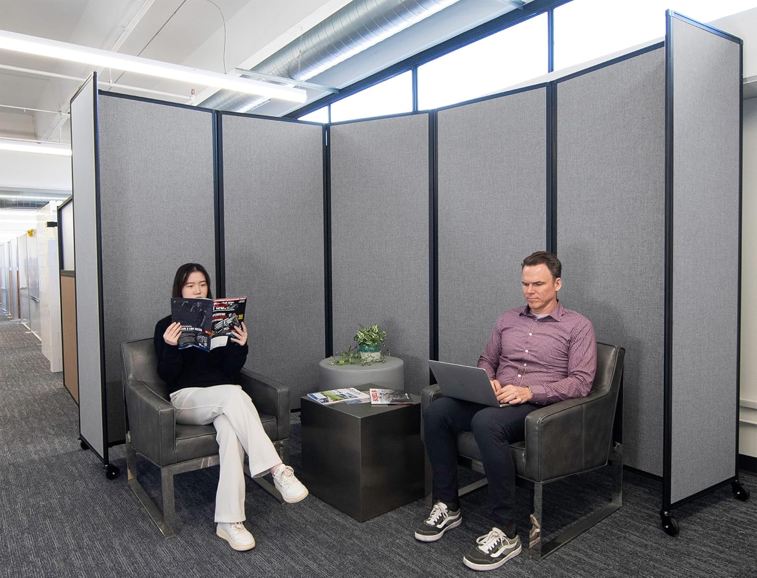 • VERSATILE CONFIGURATION: Move these panels to create a variety of arrangements, from “L” to “C” shapes, or even a perfectly straight line. This highly mobile divider is great for creating impromptu office workstations and warehouse or classroom areas.