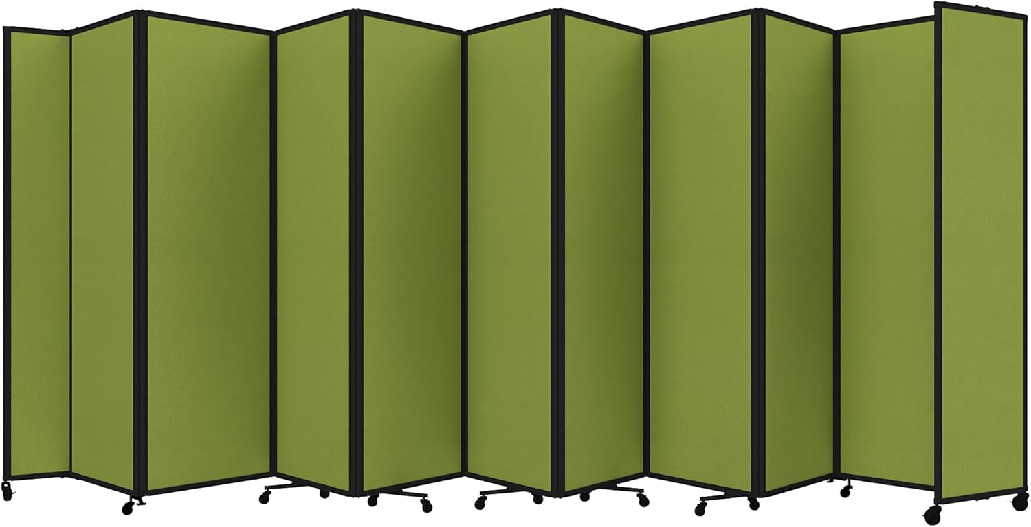 Versare Room Divider 360 Portable Wall Partition | Folding Panels | Large Freestanding Divider | Locking Wheels | Temporary Room Separator | 25' x 7'6'', Lime Green