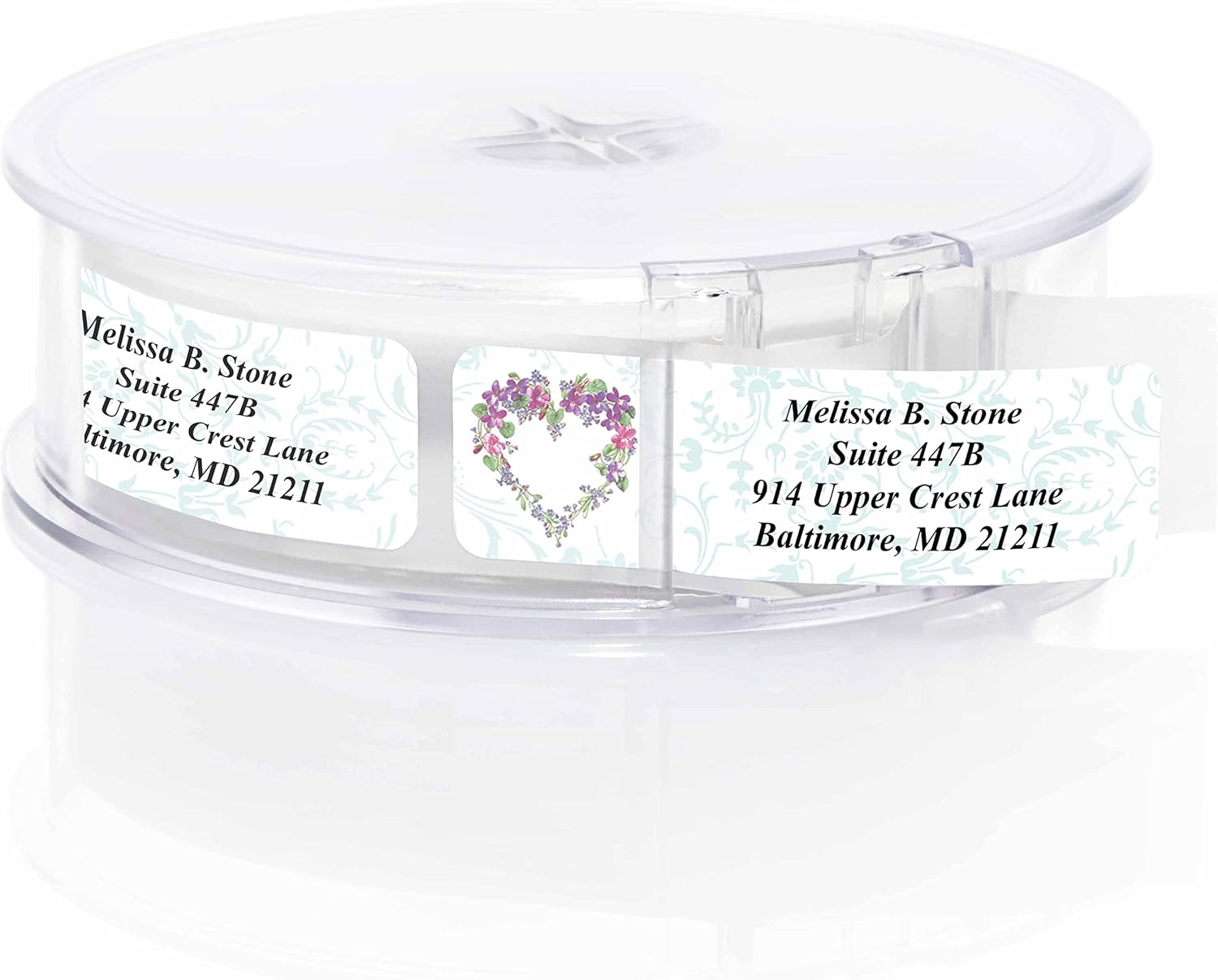 Floral Heart Wreath Rolled Address Labels with Elegant Plastic Dispenser