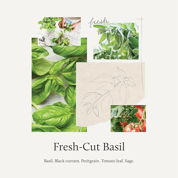 • Fresh-cut Basil Fragrance: Clean and invigorating, this scent cultivates a backyard herb garden indoors in any season. The greenness of fresh basil, tomato leaf, and delicate sage is touched with sweet notes of black currant, blood orange, and petitgrain.