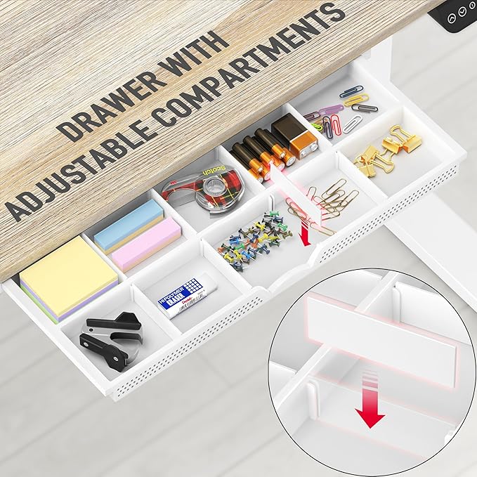 • Integrated Storage Drawer: Includes a built-in drawer to keep office supplies and personal items within reach, maintaining a clutter-free environment conducive to focus and efficiency.