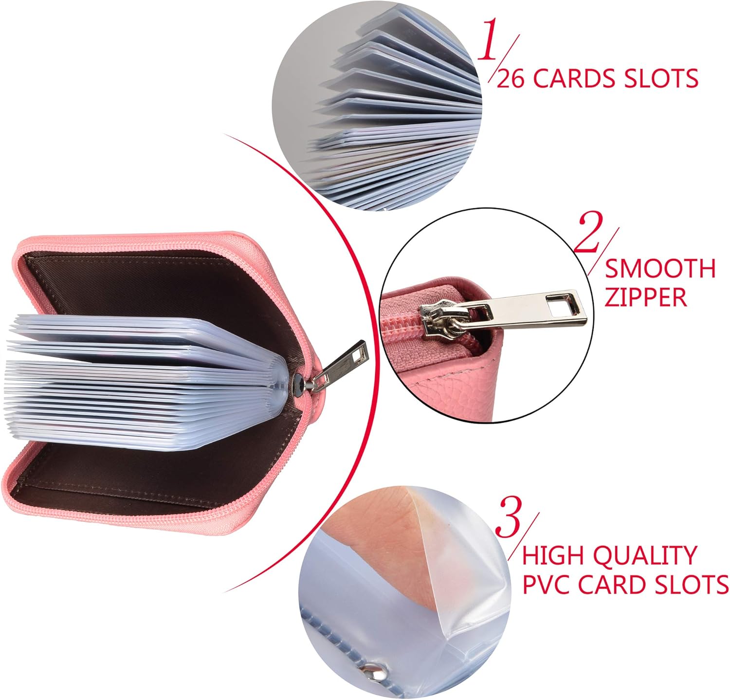 • Large Capacity: The card holder has 26 cards slots. It is enough room for your ID card, credit cards, gift cards and dicounted cards. Small size is perfect to fit in your pockets or handbags.