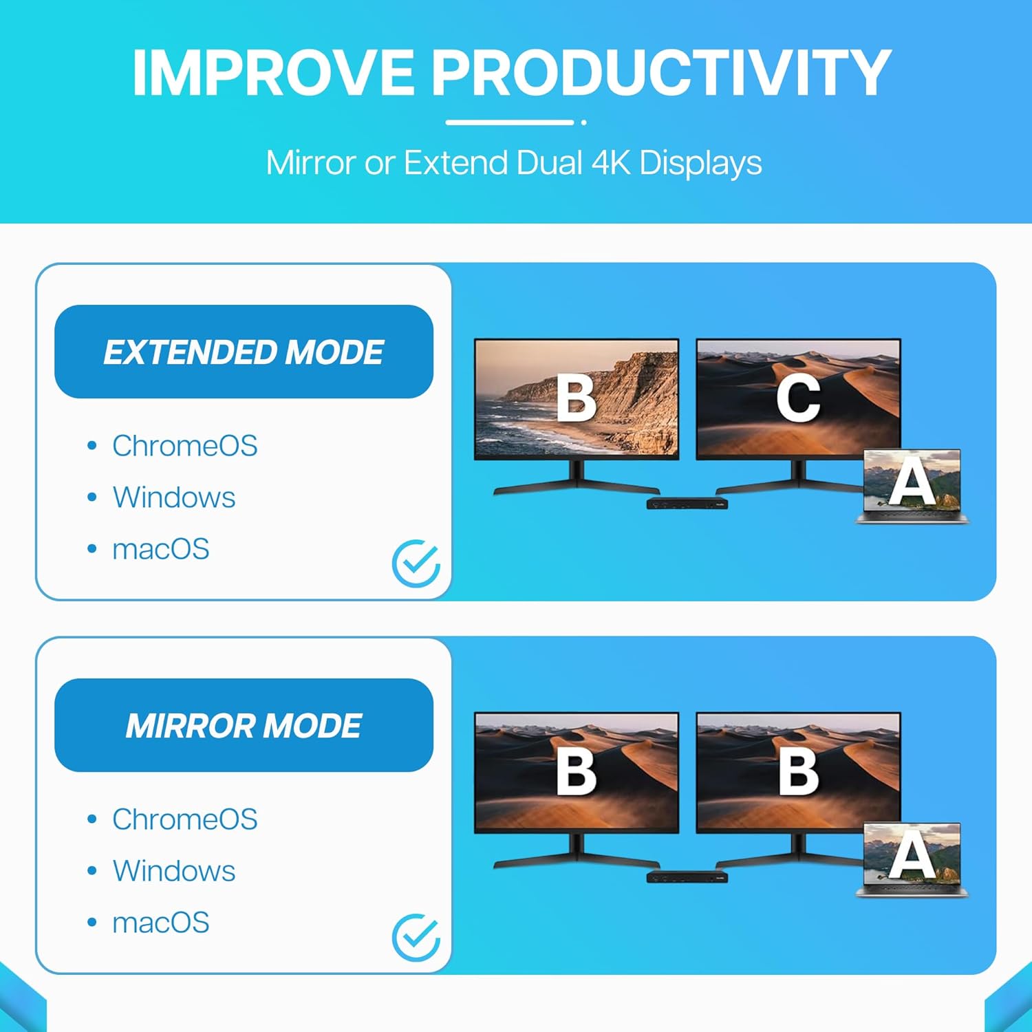 • Universal Docking Station Compatibility: Seamlessly compatible with all major brands, including Apple, Dell, Lenovo, ASUS, Microsoft, Acer, HP, Huawei, and for laptops like MacBook Air/Pro, Surface Pro, ThinkPad, ZenBook, Chromebook, MateBook, and beyond.