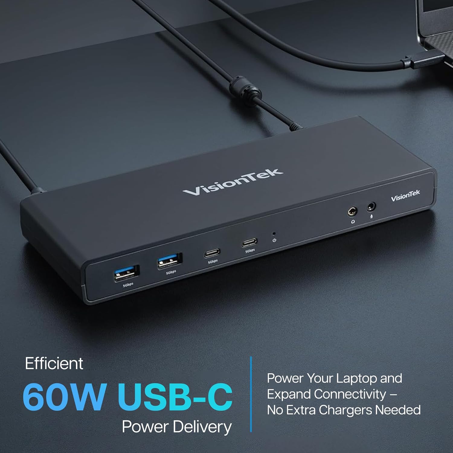 • Laptop Charging with USB-C Power Delivery (60W): Streamline your workflow with efficient 60W USB-C Power Delivery, allowing you to power or charge your laptop directly through the docking station.