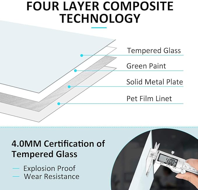 • 【FRAMELESS TEMPERED GLASS BOARD】- Easy to erase, no ghosting, will not dent, highly scratch resistant, high factor of safety. A steel sheet behind the glass that makes it magnetic. Included magnets work (Other would have to be powerful magnets).