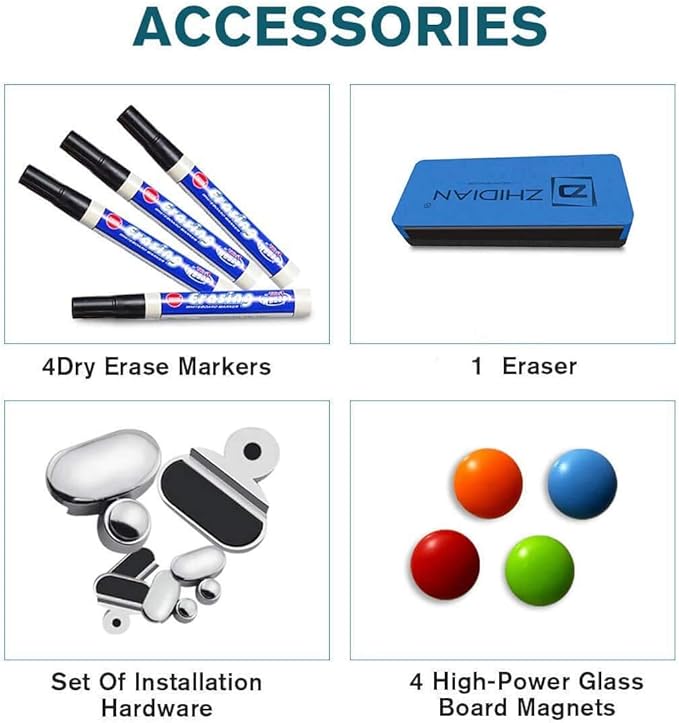 • 【BUILD TO LAST】- Wall-mounted glass whiteboard is designed for a long-lasting use, elevate your office with this elegant magnetic glass whiteboard, Suitable for offices, schools, conference rooms, etc. A glass board can be used for almost a lifetime.