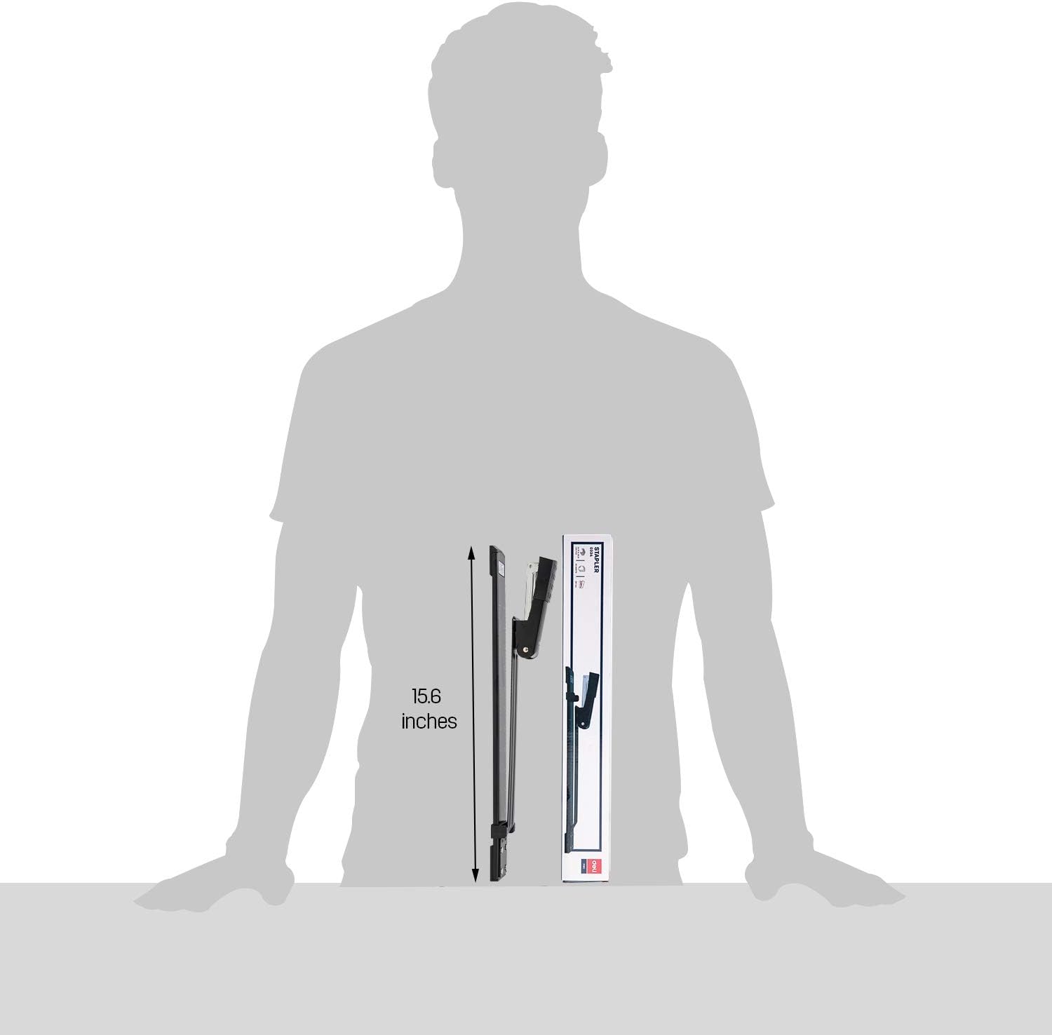 Deli Long Reach Stapler with 1000 Staples, 20 Sheet Capacity, Long Arm Standard Staplers for Booklet or Book Binding, Black