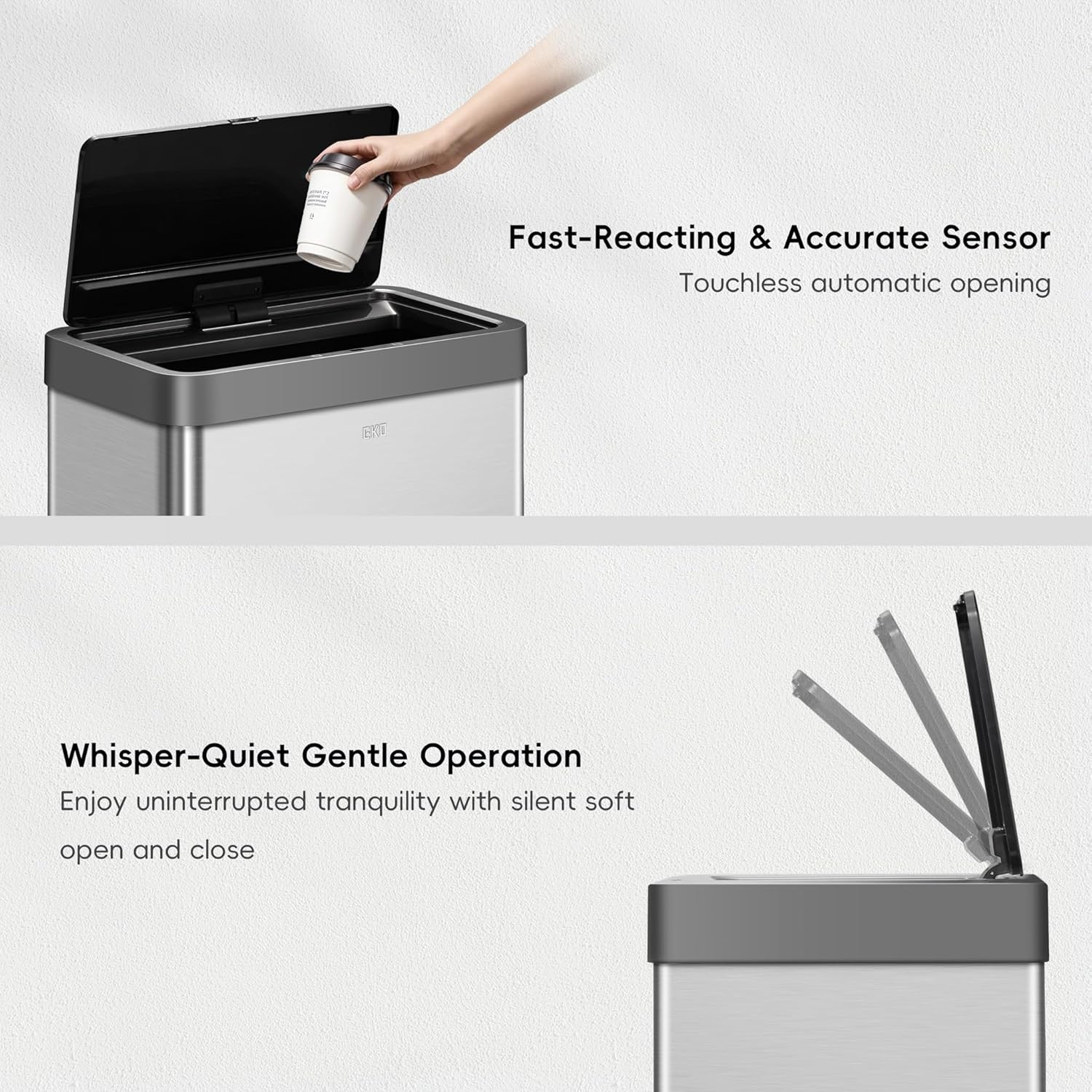 • SLEEK AND DURABLE FINISH - Meticulously crafted with a stainless steel finish, this stylish touchless trash can offers a cool and smooth texture that’s durable and visually appealing for any home decor style.