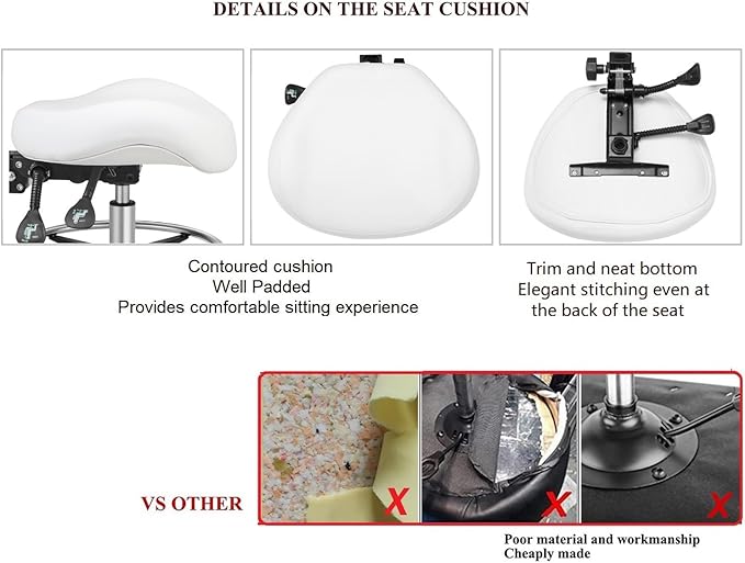 • Safety security:The heavy duty stool is well constructed,very sturdy and durable.made by top quality materials - heavy duty aluminum base in solid structure measuring 25.2 inches provides extra stability,nylon twin-wheel casters and gas lift cylinder meet ANSI/BIFMA X5.1 & EN 1335 General-Purpose Office Chairs quality standard with SGS testing and certification. Iron plate under seat cushion as double protetion,guarantees safety use,avoid seat exploded and hurt body.