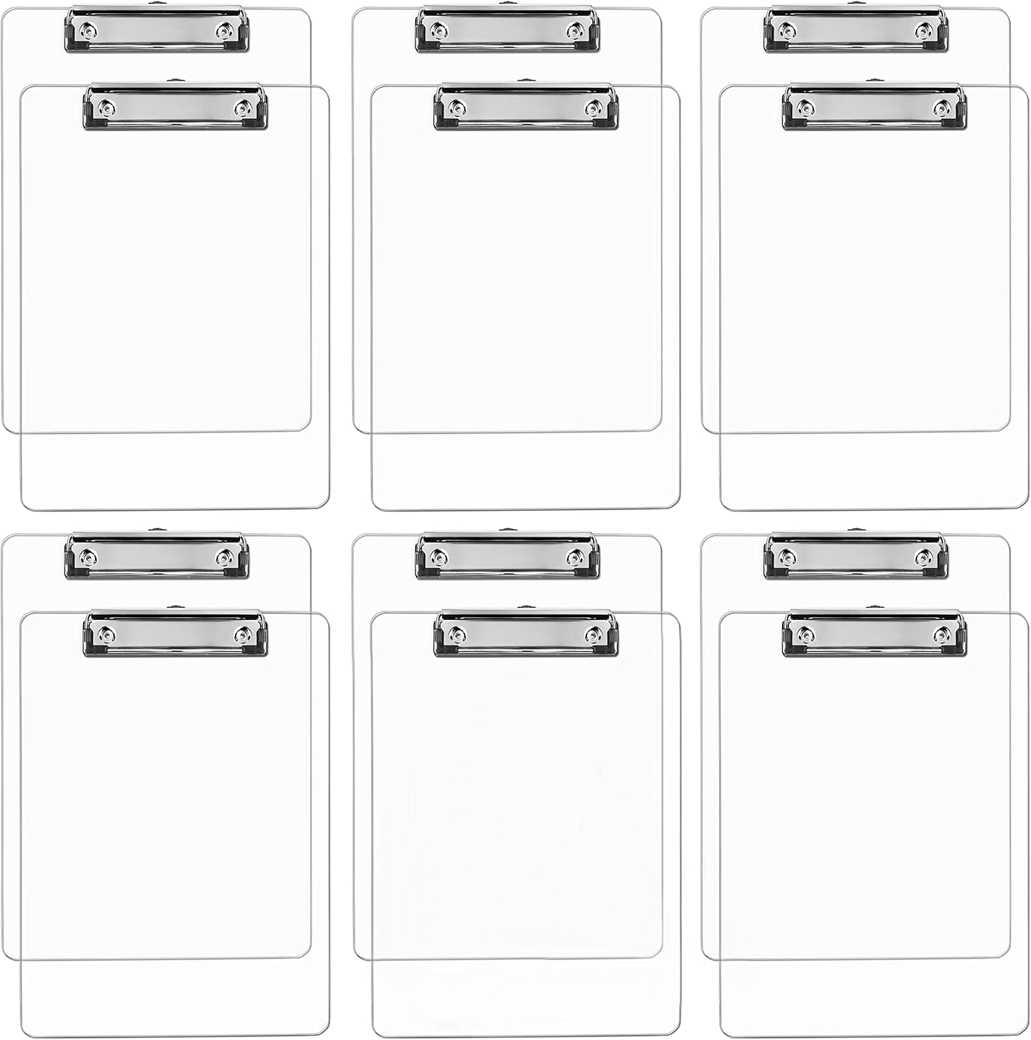 Plastic Clipboards (Set of 12) Transparent Clipboard (Clear) Strong 12.5 x 9 Inch | Holds 100 Sheets! Acrylic Clipboards with Low Profile Clip | Bulk Back to School Supplies for Teachers