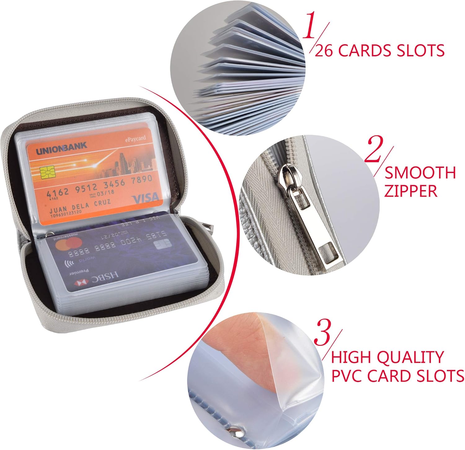 • Large Capacity: The card holder has 26 cards slots. It is enough room for your ID card, credit cards, gift cards and dicounted cards. Small size is perfect to fit in your pockets or handbags.