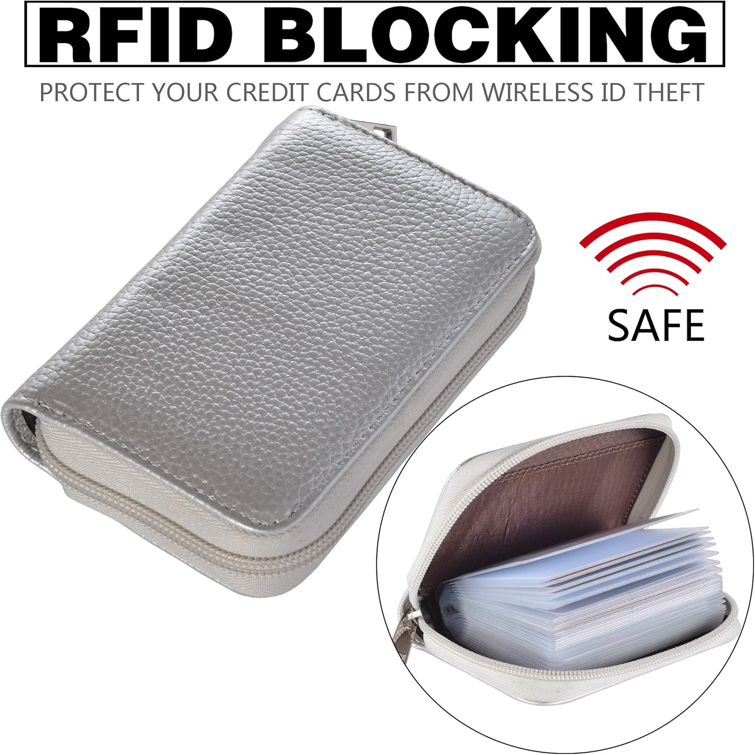 Easyoulife Genuine Leather Credit Card Holder Zipper Wallet With 26 Card Slots