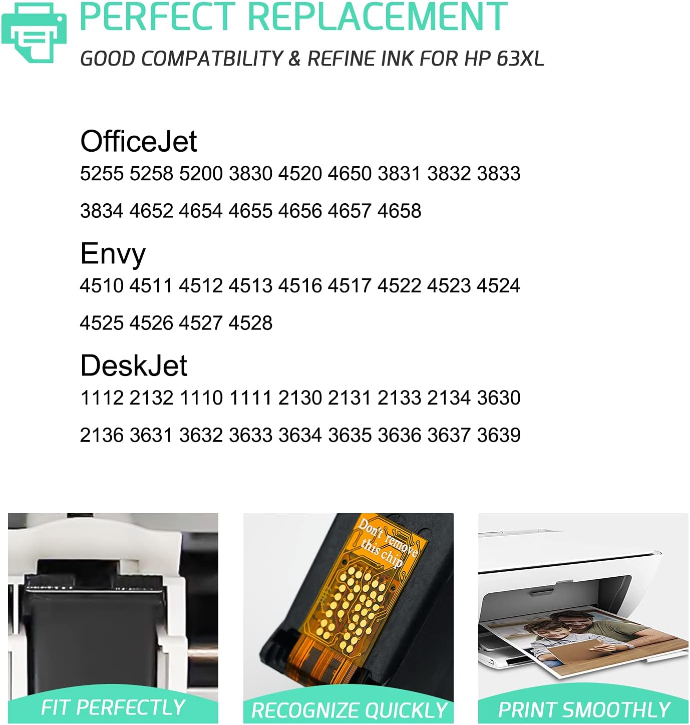 • Compatible DeskJet & Envy Printers: DeskJet 1110, 1112, 2130, 2131, 2132, 2133, 2134, 3630, 3631, 3632, 3633, 3634, 3636, 3637, 3639; Envy 4510, 4511, 4512, 4513, 4516, 4517, 4520, 4521, 4522, 4523, 4524, 4525