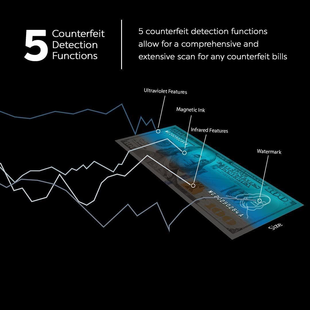 • AUTOMATIC DETECTION IN UNDER A SECOND: High-speed bill verification in less than 1 second and detects counterfeit U.S. currency.