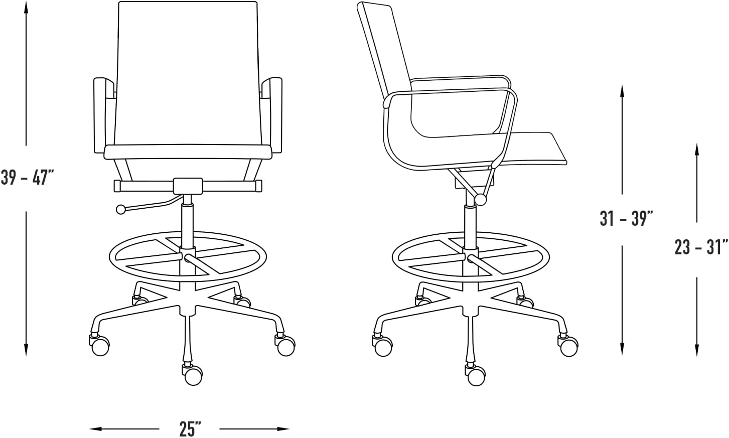 • Aluminum Base with Steel Foot Ring and Additional Stationary Glides. The aluminum base not only looks great, but it’s also the strongest base on the market — supporting over 400 lbs. The base, foot ring, and stationary glides also provide a secure and reliable foundation for drafting height requirements.