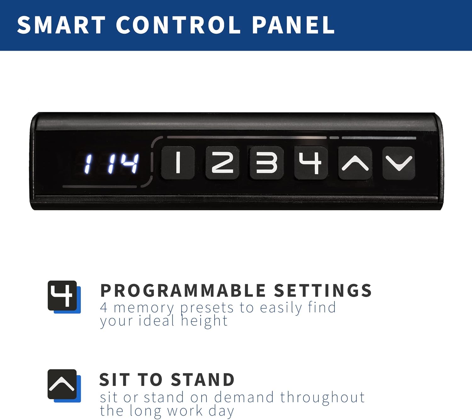 • Memory Controller: The easy-to-use push-button controller features 4 memory presets to save your desired heights. With a simple click of a button, you can say goodbye to long hours of sitting and end the day feeling energized and refreshed