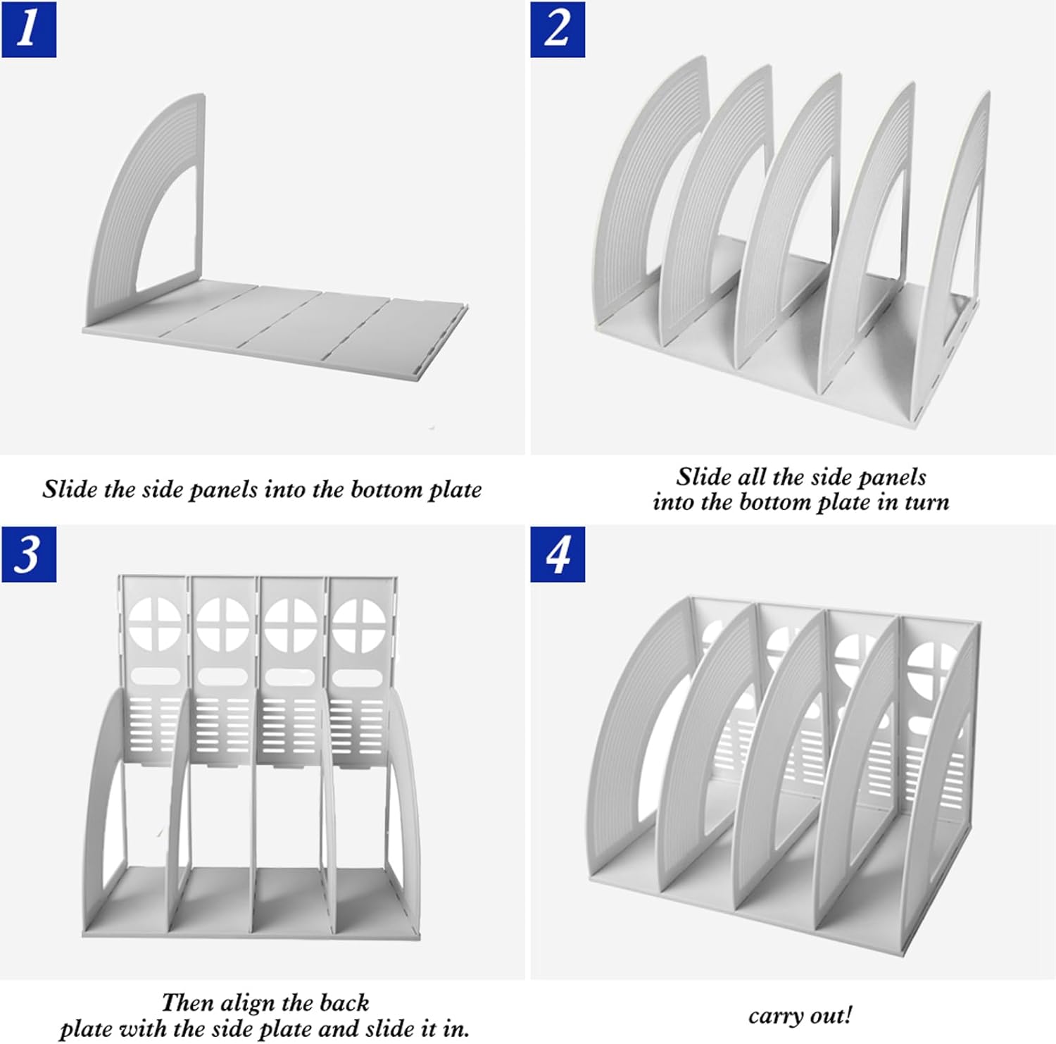 • ASSEMBLABLE AND FLEXIBLE: the file holder is not assembled when you receive it, you need to fix it by your hand, it’s easy assemble, you can according to our instruction picture to assemble it, and if you don’t use it, just disassemble it and storage it.