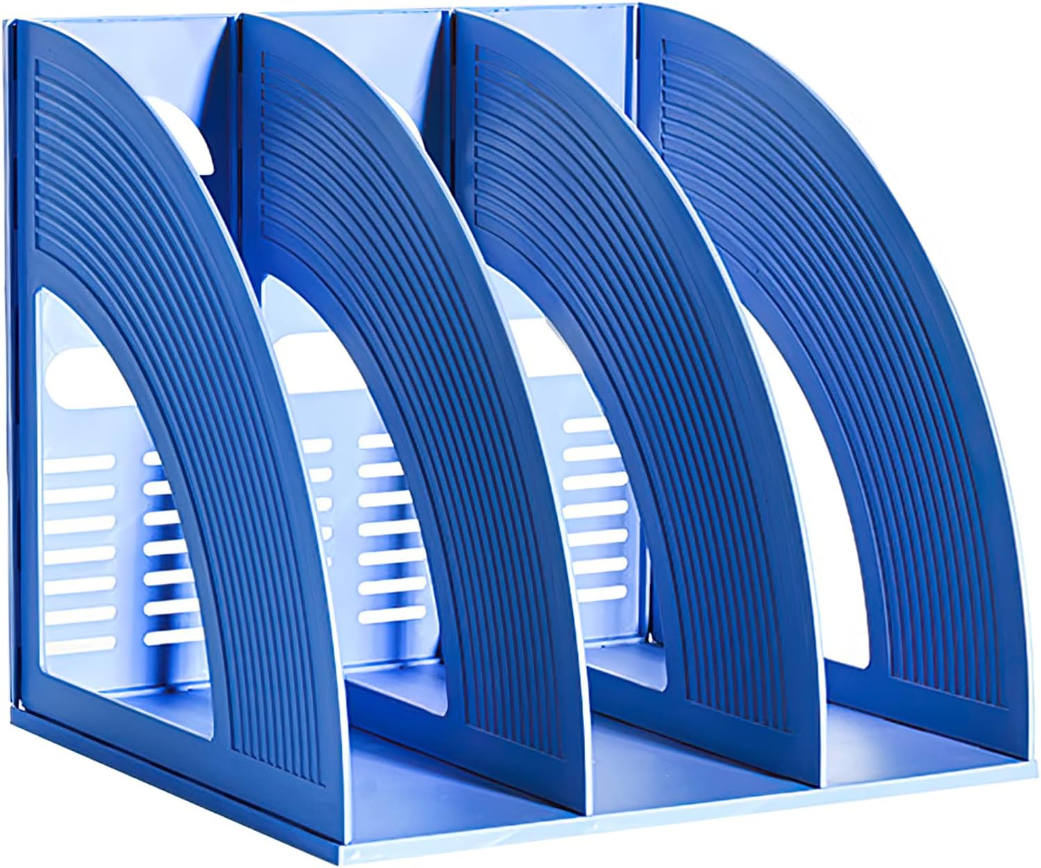 SAYEEC File Holders Folder Magazine Storage Holder Binder Stand 3 Compartment Blue Standing Files Bookshelf Organizer Magazines Divider Black Holds Documents for School Working Students