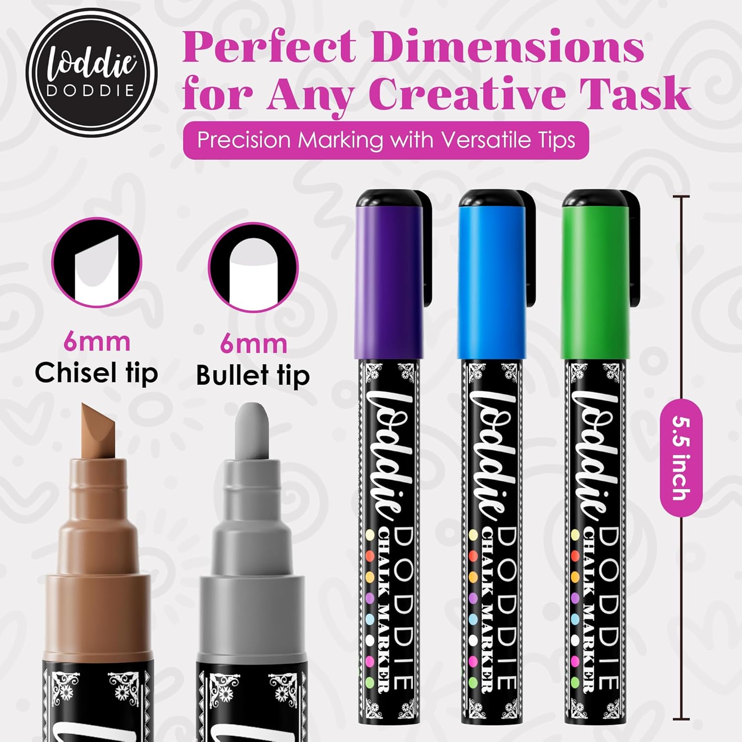 • Shiny Colors: Let your work shine with Loddie Doddie chalk markers metallic. Perfect for art or labeling storage containers, these metallic chalkboard markers are vibrant and versatile, making holiday decorating simple with their standout colors