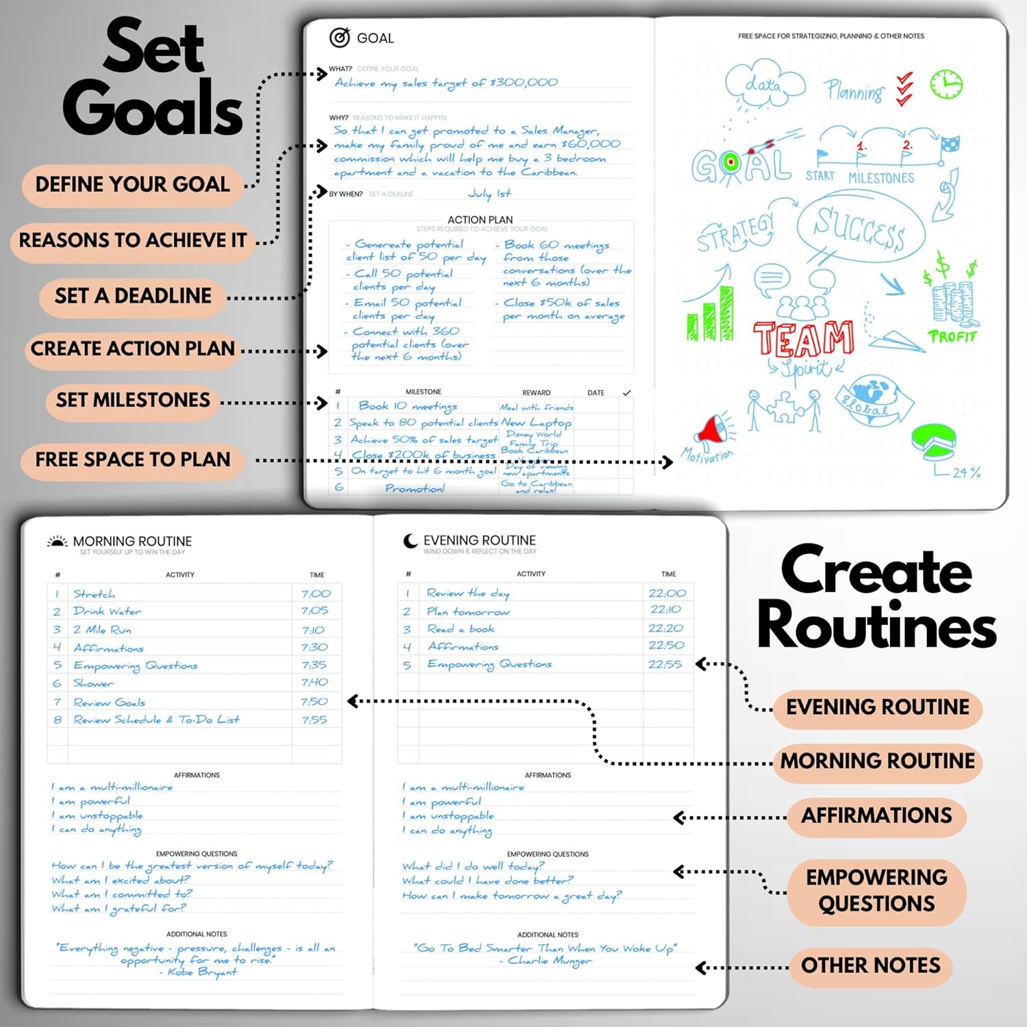 • STAY ALIGNED WITH YOUR GOALS – Use built-in goal-setting tools and review prompts to stay focused on long-term success—whether you’re managing business milestones, career growth, or personal development.
