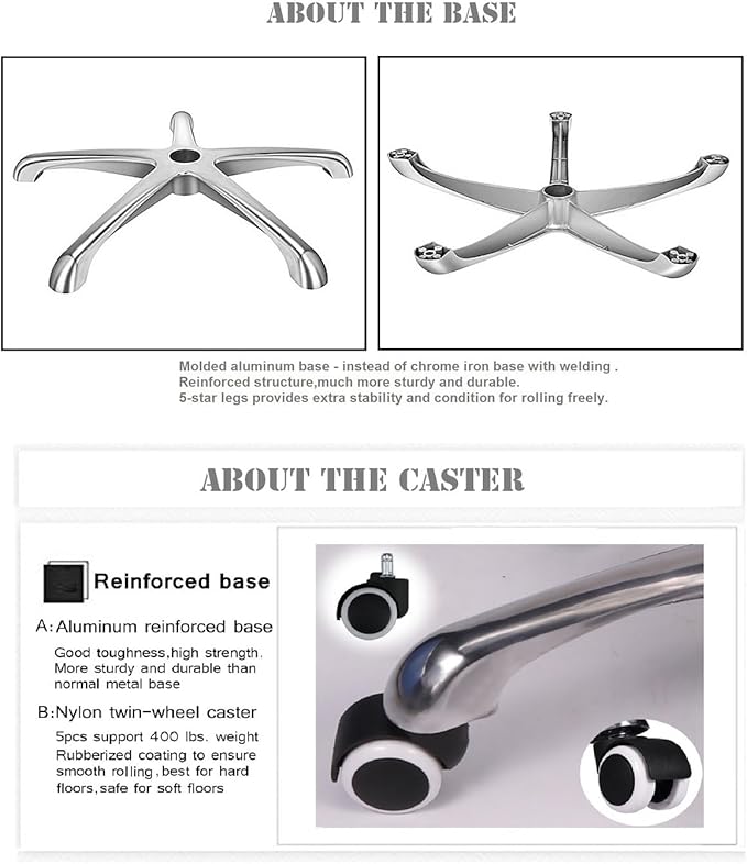• Safety security:The heavy duty stool is well constructed,very sturdy and durable.made by top quality materials - heavy duty aluminum base in solid structure measuring 25.2 inches provides extra stability,nylon twin-wheel casters and gas lift cylinder meet ANSI/BIFMA X5.1 & EN 1335 General-Purpose Office Chairs quality standard with SGS testing and certification. Iron plate under seat cushion as double protetion,guarantees safety use,avoid seat exploded and hurt body.