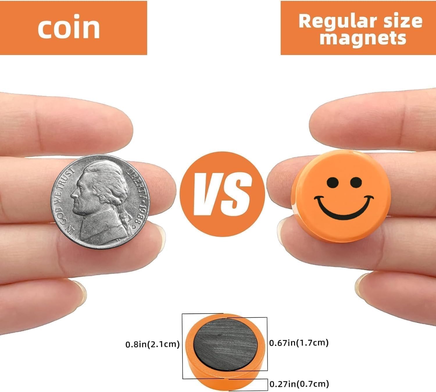 • 50 Pack Locker Magnets Set: Includes 50 smiley face magnets in 10 vibrant colors (as shown in images), 5 pieces per color. Each magnet measures 0.8 inch (2cm) in diameter.