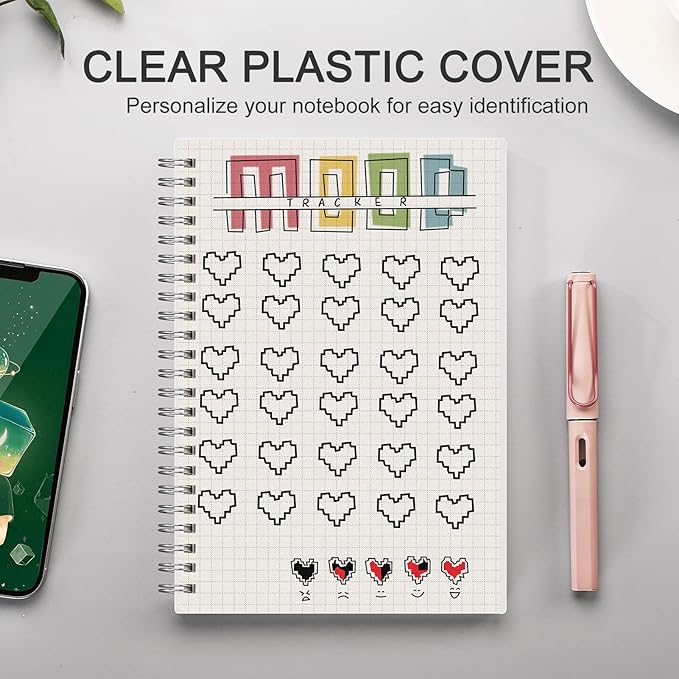 • Clear Plastic Hardcover - Sturdy waterproof round-cornered plastic hardcover prevents the inner paper getting damaged. Transparent cover easy for personalizing your unique cover on first page, Plastic Hardcover make it stiff enough to draw or write when you are standing.