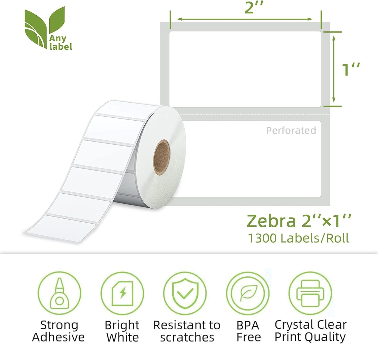 2" x 1" Direct Thermal Label, Paper for Barcodes Postage Address Perforated & Compatible with Rollo, Zebra, Munbyn, Nelko Printers(12 Rolls, 1300 Labels/Roll)