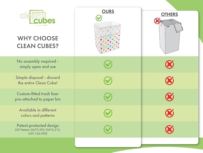 • ✅【EFFORTLESS CLEANUP & DISPOSAL】Simply unfold, use, and toss — keep your event clean and mess-free without extra effort. Clean Cubes are disposable recycling bins and trash cans with a patent-protected design and custom-fitted trash liner in each bin.